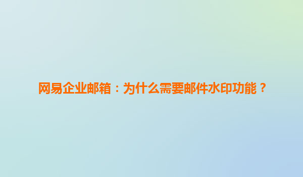 在当今信息化迅速发展的时代,电子邮件已成为企业沟通不可或缺的工具。网易企业邮箱作为市场上的佼佼者,提供了许多高级功能,其中邮件水印功能是其独特而重要的一环。本文将探讨邮件水印功能的必要性,并结合使用网易企业邮箱后的感受来进行阐述。