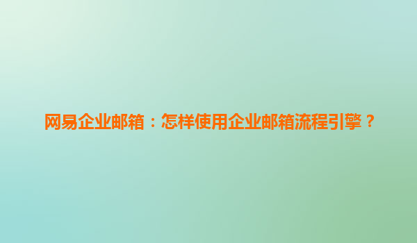 网易企业邮箱:怎样使用企业邮箱流程引擎?