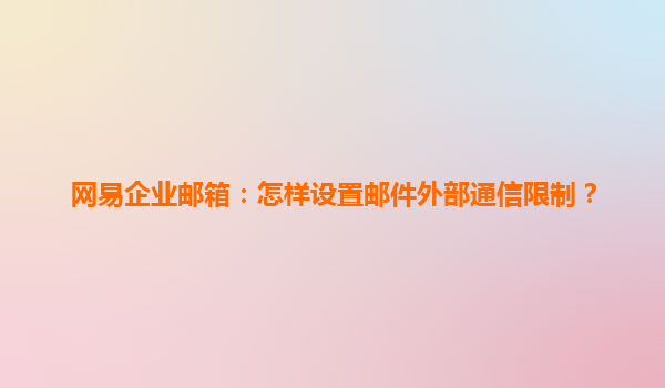网易企业邮箱:怎样设置邮件外部通信限制?