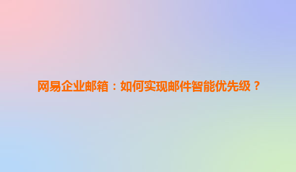 在现代企业中,电子邮件仍然是最重要的沟通工具之一。然而,随着邮件数量的增加,如何有效地管理和优先处理邮件成为企业面临的一个重大挑战。网易企业邮箱凭借其强大的功能和网易企业邮箱代理商的支持,为用户提供了一系列实现邮件智能优先级的解决方案。