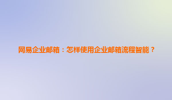 网易企业邮箱:怎样使用企业邮箱流程智能?