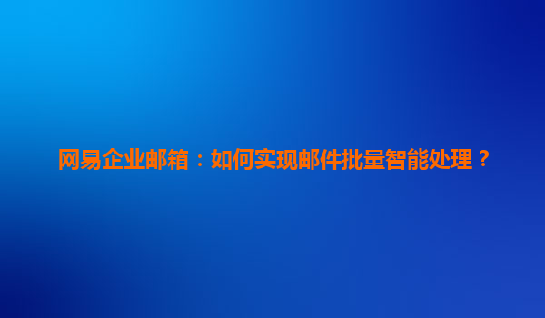 网易企业邮箱:如何实现邮件批量智能处理