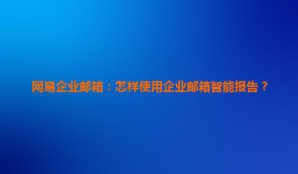 如何使用网易企业邮箱智能报告