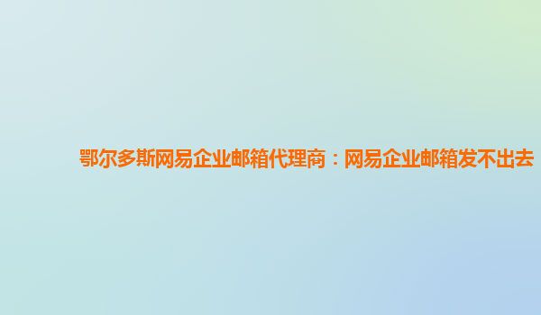 2024-02-25鄂尔多斯网易企业邮箱代理商:网易企业邮箱发不出去 最近接到很多企业用户反馈,他们在使用网易企业邮箱时遇到了发不出去的问题。作为鄂尔多斯地区的网易企业邮箱代理商,我们深感责任重大,特此撰写本文,帮助大家...