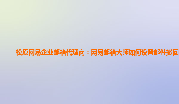 松原网易企业邮箱代理商:网易邮箱大师如何设置邮件撤回权限 作为松原地区的网易企业邮箱代理商,我们为您提供了最专业的企业邮箱服务。其中,网易邮箱大师是企业邮箱的一大亮点,它不仅拥有强大的功能和稳定的性能...
