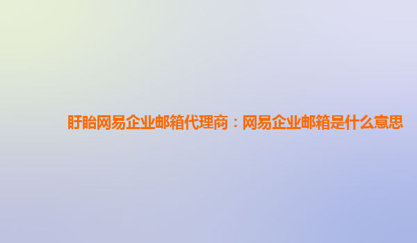 2024-02-24盱眙网易企业邮箱代理商:网易企业邮箱是什么意思 网易企业邮箱是指网易公司提供的专门针对企业用户的一款邮箱服务。作为盱眙地区的网易企业邮箱代理商,我们有责任向大家介绍网易企业邮箱的意义和优势。 ...