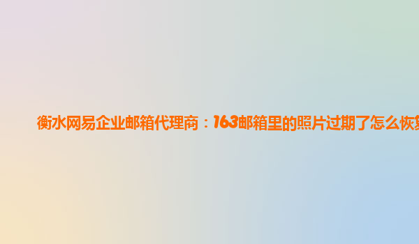 2024-02-24衡水网易企业邮箱代理商:163邮箱里的照片过期了怎么恢复 作为衡水网易企业邮箱代理商,我们经常接到用户反映在163邮箱中的照片过期的问题。这个问题可能会给用户带来困扰,但是不用担心,我们可以帮助您解决这个问...