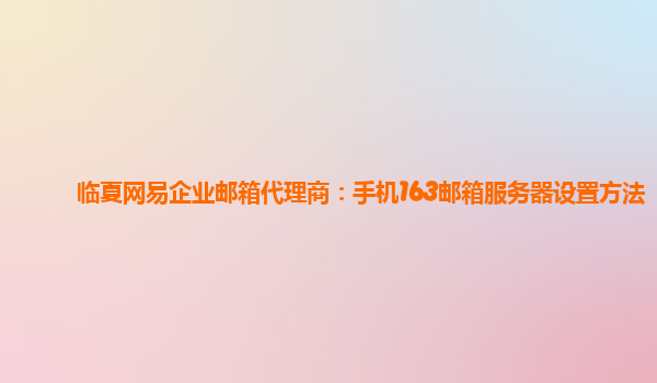 2024-02-23临夏网易企业邮箱代理商:手机163邮箱服务器设置方法 随着互联网的发展,企业邮箱在商务沟通中起着至关重要的作用。网易企业邮箱作为国内知名的企业邮箱服务商之一,受到了广泛的认可和好评。在临夏地区,有专业的...