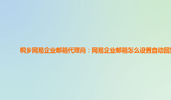 2024-02-22桐乡网易企业邮箱代理商:网易企业邮箱怎么设置自动回复 作为桐乡地区的网易企业邮箱代理商,我们经常接到用户关于如何设置自动回复的问题。今天我们就来详细介绍一下网易企业邮箱如何设置自动回复,并分享一些使用...