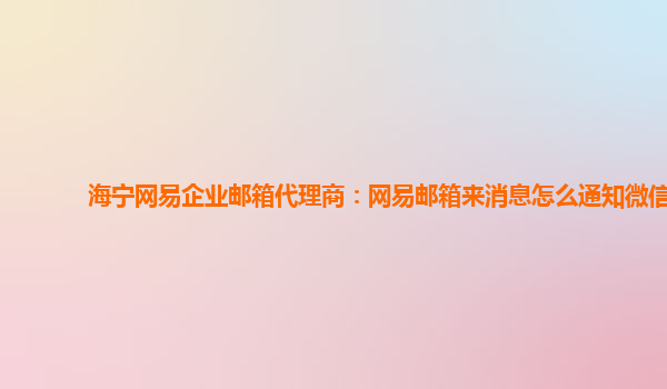 2024-02-22海宁网易企业邮箱代理商:网易邮箱来消息怎么通知微信 作为海宁网易企业邮箱的代理商,我们深知网易企业邮箱在企业邮件服务领域的优势。使用网易企业邮箱带来的便捷和高效让我们的工作变得更加顺畅。 网易企业邮箱...