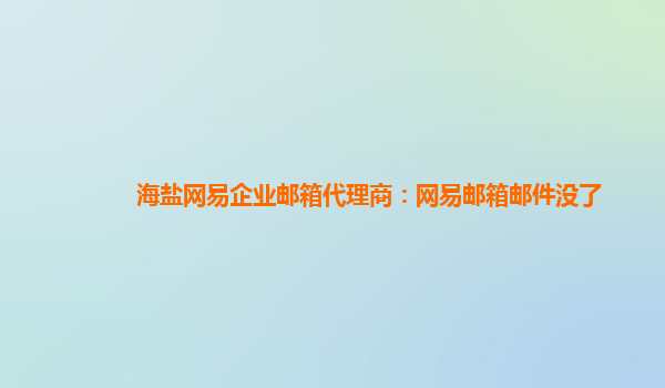2024-02-22海盐网易企业邮箱代理商:网易邮箱邮件没了 随着互联网的发展,电子邮件在企业中扮演着极其重要的角色。而作为一家知名的企业邮箱服务提供商,网易企业邮箱备受广大用户信赖。然而,有时候我们也会遇到一些问题...