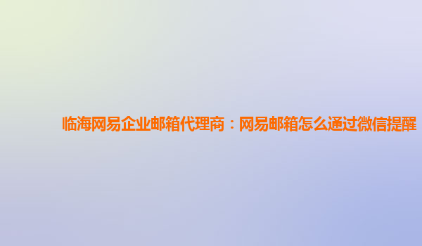 2024-02-22临海网易企业邮箱代理商:网易邮箱怎么通过微信提醒 作为临海网易企业邮箱代理商,我们深知网易企业邮箱的优势和好用之处,其中通过微信提醒是一项非常实用的功能。今天我们就来讲解一下如何在网易企业邮箱中设置通...