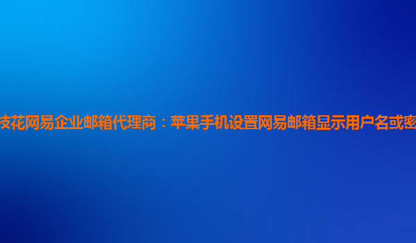 2024-02-21网易企业邮箱代理商:苹果手机设置网易邮箱显示用户名或密码不正确为什么 很多用户在使用苹果手机设置网易企业邮箱时,可能会遇到显示用户名或密码不正确的问题。这种情况通常是由于以下几个原因导致的: 1.输入...