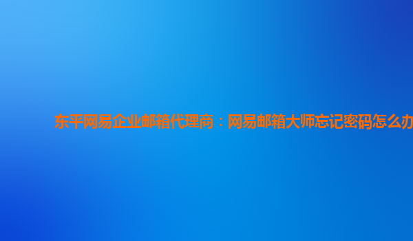 2024-02-21东平网易企业邮箱代理商:网易邮箱大师忘记密码怎么办 在使用网易企业邮箱时,有时候我们会遇到忘记密码的情况。不过不用担心,网易企业邮箱代理商可以帮助您解决这个问题。 优势一:网易企业邮箱代理商提供专业的...