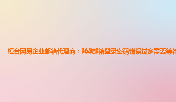 2024-02-20广饶网易企业邮箱代理商:网易邮箱登录密码次数过多要等多久 网易企业邮箱是一款优秀的企业邮箱服务,深受广大企业用户的喜爱。作为广饶网易企业邮箱代理商,我们将为您介绍网易企业邮箱的优势,...