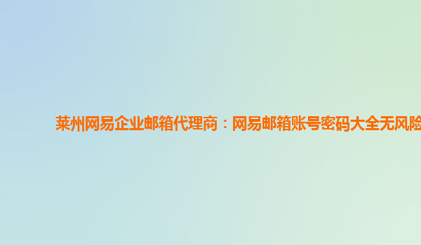 2024-02-20荣成网易企业邮箱代理商:网易邮箱的密码和网易游戏的密码 随着互联网的发展,电子邮件已经成为我们日常工作中不可或缺的一部分。而作为国内领先的企业邮箱服务商,网易企业邮箱一直以稳定性、安全性和便捷...