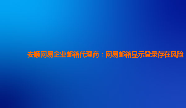 2024-02-18安顺网易企业邮箱代理商:网易邮箱显示登录存在风险 近日,网易企业邮箱显示登录存在风险,这引起了广大用户的关注。作为安顺网易企业邮箱代理商,我们愿意向大家详细介绍网易企业邮箱的优势,并希望能解决这一问题...