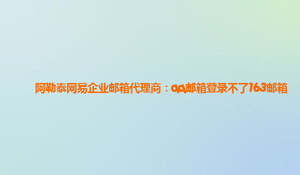 2024-02-17阿勒泰网易企业邮箱代理商:qq邮箱登录不了163邮箱 作为阿勒泰的网易企业邮箱代理商,我们了解到一些用户在使用qq邮箱登录163邮箱时遇到问题。本文将简要介绍网易企业邮箱的优势,并为您解决这一问题。 网易企...