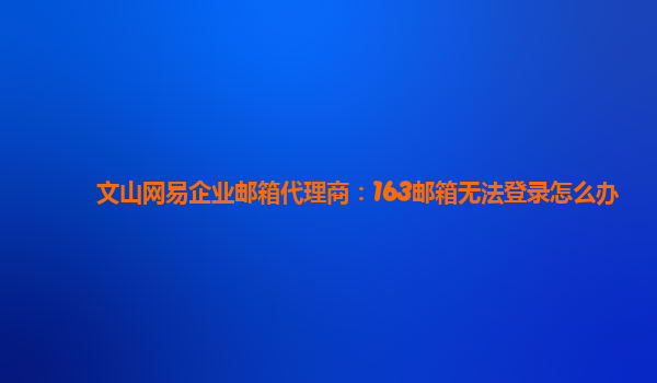 2024-02-17网易企业邮箱代理商:163邮箱无法登录怎么办 网易企业邮箱是一款广受欢迎的企业级邮件服务,以其稳定性和便捷性而备受青睐。然而,有时候我们可能会遇到无法登录163邮箱的问题。以下是一些建议和解决方案。 ...