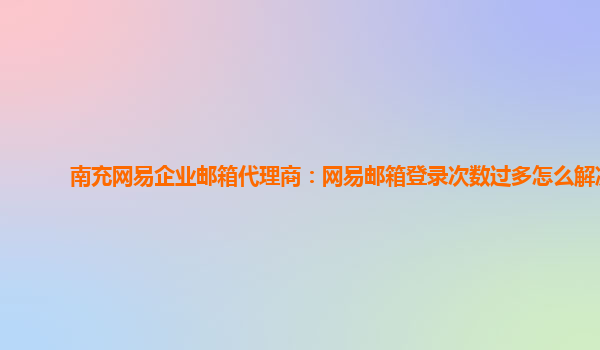 2024-02-16南充网易企业邮箱代理商:网易邮箱登录次数过多怎么解决 网易企业邮箱作为业界知名的企业级邮箱服务商,为用户提供了稳定高效的邮箱服务。然而,有时候我们可能会遇到网易邮箱登录次数过多的问题。本文将为您详细介...
