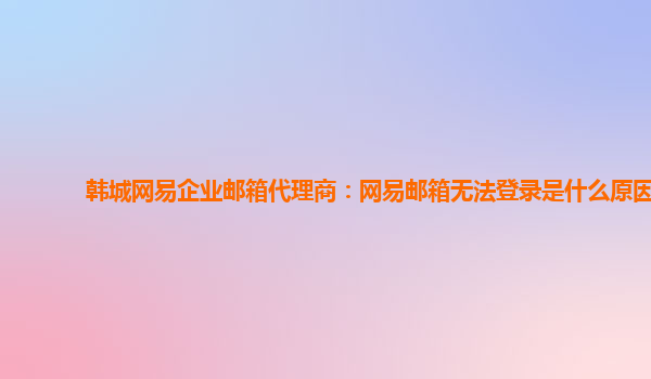 2024-02-16韩城网易企业邮箱代理商:网易邮箱无法登录是什么原因 网易企业邮箱作为一款广泛使用的企业邮箱服务,有时候可能会遇到无法登录的问题。下面将从几个常见的原因进行分析,并介绍网易企业邮箱的优势。 1.常见...