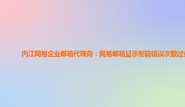 2024-02-16内江网易企业邮箱代理商:网易邮箱显示密码错误次数过多 最近,我作为内江地区的网易企业邮箱代理商,收到了一些用户反馈,称他们在登录网易企业邮箱时遇到了密码错误次数过多的问题。今天,我想以此为主题,向大家...