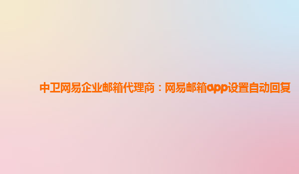 2024-02-15中卫网易企业邮箱代理商:网易邮箱app设置自动回复 网易企业邮箱是一款功能强大的企业级电子邮件服务,提供了丰富的功能和优势,其中之一就是可以通过网易邮箱app设置自动回复。使用网易企业邮箱后,我对自动回复的...