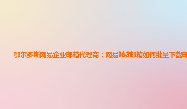 2024-02-15网易企业邮箱代理商:163邮箱如何批量下载文件 作为呼伦贝尔网易企业邮箱的代理商,我们了解到很多使用者都希望能够方便快捷地批量下载文件。在本文中,我们将介绍一种简单明了的方法来实现这一需求。 网易企业邮...