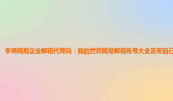 荆门网易企业邮箱代理商:我的世界网易邮箱账号密码大全已实名认证2022 作为一名荆门网易企业邮箱的代理商,我想分享一下我对网易企业邮箱的优势以及使用后的感受。 网易企业邮箱的优势 1.安全可靠:网易企业邮...
