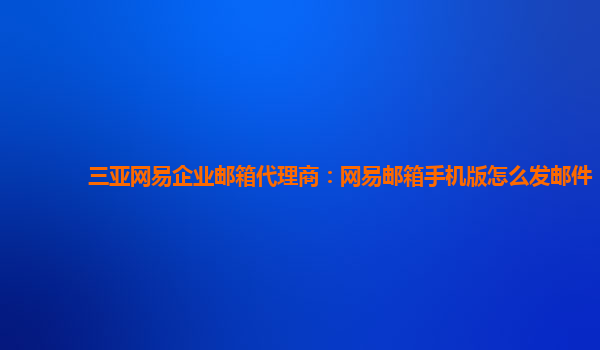 2024-02-13网易企业邮箱手机版怎么发邮件 作为三亚网易企业邮箱的代理商,我们了解到网易企业邮箱手机版是一款非常方便实用的工具。下面我将为您详细介绍如何使用网易企业邮箱手机版来发邮件。 一、下载和安装 首先,您需要...