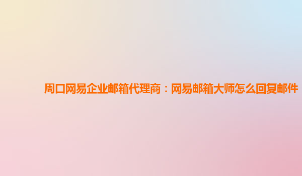 2024-02-13周口网易企业邮箱代理商:网易邮箱大师怎么回复邮件 随着互联网的发展和企业对电子邮件需求的增加,网易企业邮箱成为了一种常用的企业邮件解决方案。作为一款功能强大、稳定可靠的企业邮箱产品,网易企业邮箱在市场...