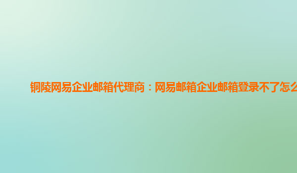 2024-02-12铜陵网易企业邮箱代理商:网易邮箱企业邮箱登录不了怎么办 随着企业的发展和管理的需求,网易企业邮箱作为一款强大而稳定的企业邮件管理工具,被越来越多的企业所采用。然而,在使用过程中,有时会遇到无法登录...