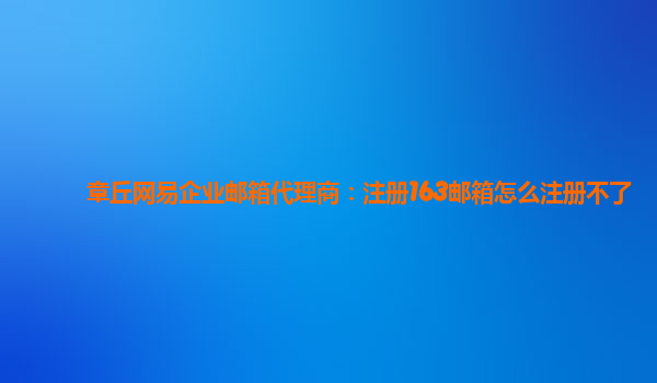 章丘网易企业邮箱代理商:注册163邮箱怎么注册不了 随着互联网的高速发展,电子邮件已经成为人们日常生活中不可或缺的一部分。而对于企业来说,拥有一个稳定、安全的企业电子邮箱是至关重要的。网易企业邮箱作为国...
