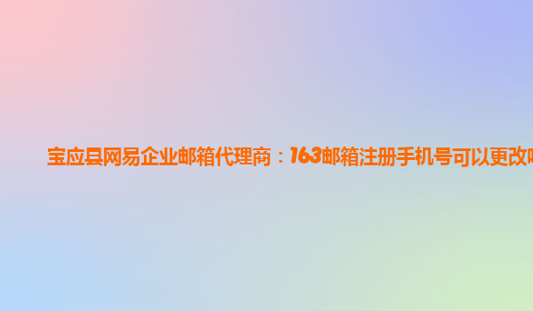 2024-02-02网易企业邮箱代理商:163邮箱注册手机号可以更改吗 作为宝应县网易企业邮箱的代理商,我们经常接到用户的疑问:“163邮箱注册手机号可以更改吗?”在这篇文章中,我们将回答这个问题并分享使用网易企业邮箱后的感...