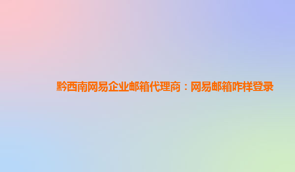 2024-01-30黔西南网易企业邮箱代理商:网易邮箱登录及优势 一、网易企业邮箱登录方式 网易企业邮箱是一款功能强大的企业邮箱服务,登录方式如下: 打开网页浏览器,输入网址https://qiye.163.com/。 在登录页面中输入账...