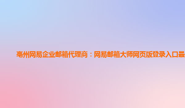 2024-01-29亳州网易企业邮箱代理商:网易邮箱大师网页版登录入口最新版 亳州网易企业邮箱代理商 作为亳州地区的网易企业邮箱代理商,我们致力于为当地企业提供高效、安全、稳定的企业邮箱解决方案。通过与网易合作,我们能够...