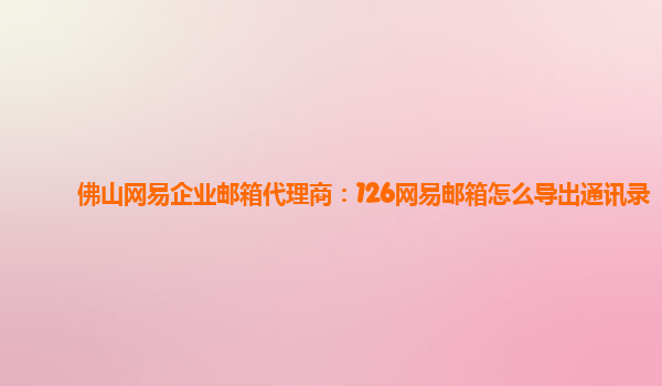 佛山网易企业邮箱代理商:126网易邮箱怎么导出通讯录 网易企业邮箱作为一款专业的企业邮箱服务,为用户提供了丰富的功能和便捷的使用体验。本文将介绍如何在126网易邮箱上导出通讯录,并结合使用企业邮箱后的感受来...