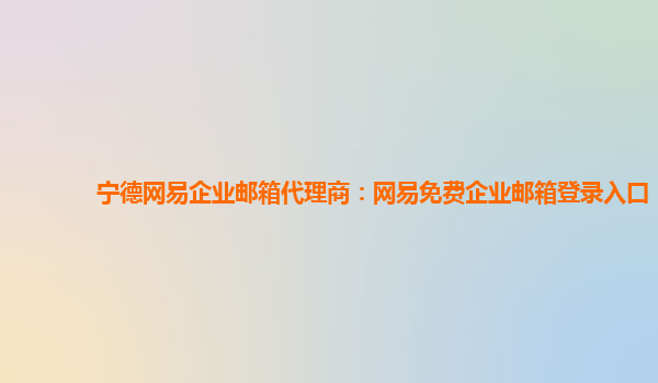 2024-01-29宁德网易企业邮箱代理商:网易免费企业邮箱登录入口 作为一家宁德地区的网易企业邮箱代理商,我们希望向大家介绍网易免费企业邮箱的登录入口以及使用该企业邮箱带来的种种优势。在这篇文章中,我们将解答以下问题...