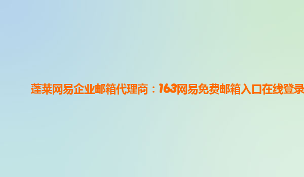 2024-01-26蓬莱网易企业邮箱代理商:163网易免费邮箱入口在线登录 网易企业邮箱是一款专为企业用户定制的高效、安全、稳定的企业级邮箱服务。作为蓬莱网易企业邮箱代理商,163网易免费邮箱入口在线登录为您提供一站式邮箱解决...