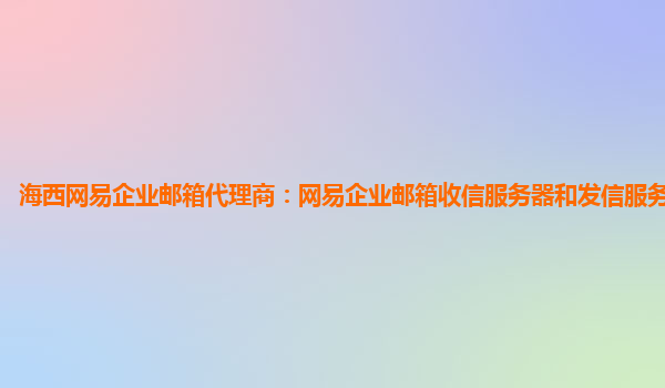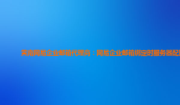 2024-01-26黄南网易企业邮箱代理商:网易企业邮箱绑定时服务器配置 作为一家黄南地区的网易企业邮箱代理商,我们深入了解并推荐企业使用网易企业邮箱。在使用过程中,我们注意到服务器配置对于成功绑定企业邮箱至关重要。本文...