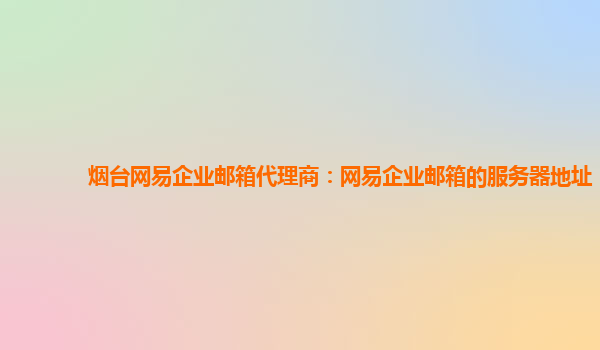 2024-01-26烟台网易企业邮箱代理商:网易企业邮箱的服务器地址 网易企业邮箱是一款专为企业用户设计的高效协同办公工具,旨在提供安全稳定、易于管理的企业邮箱服务。作为烟台地区的代理商,我们非常荣幸能向各位介绍网易企业...