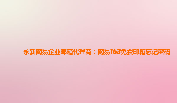 2024-01-25永新网易企业邮箱代理商:网易163免费邮箱忘记密码 小标题1:永新网易企业邮箱代理商 作为永新地区的网易企业邮箱代理商,我们提供全方位的网易企业邮箱服务。不仅可以帮助您创建企业邮箱账号,还能提供后续的技术...