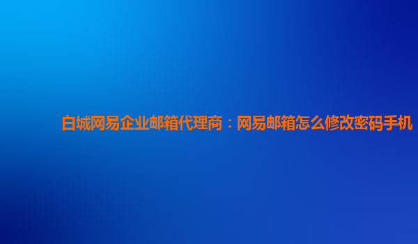 2024-01-25浮梁网易企业邮箱代理商:网易邮箱手机版如何修改密码 作为浮梁地区的网易企业邮箱代理商,我们将为您介绍如何在手机版中修改网易邮箱密码。通过使用网易企业邮箱,您可以获得丰富的功能和优势,让您的工作更加高...