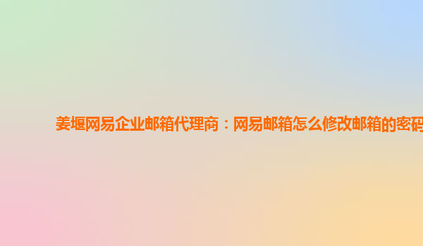 2024-01-25姜堰网易企业邮箱代理商:网易邮箱怎么修改邮箱的密码 优势分析 作为姜堰地区的网易企业邮箱代理商,我们提供以下优势: 稳定可靠:网易企业邮箱是中国领先的企业邮箱服务提供商之一,拥有强大的技术支持和稳定的服...
