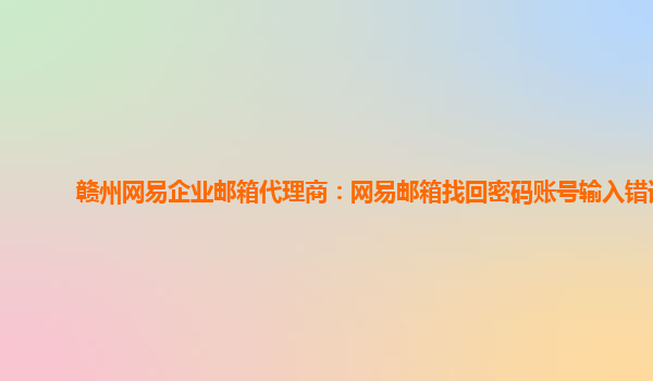 2024-01-25赣州网易企业邮箱代理商:网易邮箱找回密码账号输入错误 小标题一:网易企业邮箱的优势 网易企业邮箱作为一款专业的企业邮件解决方案,具有以下优势: 稳定可靠:由网易云计算支持,服务器稳定运行,保障企业...