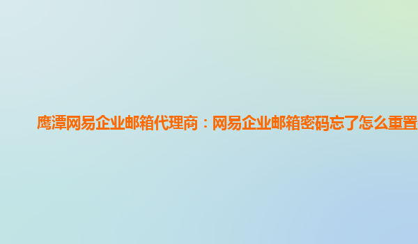 鹰潭网易企业邮箱代理商:网易企业邮箱密码忘了怎么重置密码 网易企业邮箱是一款专业的企业邮箱解决方案,为企业提供了稳定可靠的电子邮件服务。然而,有时候我们可能会忘记自己的邮箱密码,接下来将介绍如何重置网...