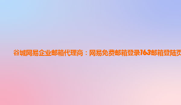 2024-01-23谷城网易企业邮箱代理商:网易免费邮箱登录163邮箱登陆页面 网易企业邮箱代理商 作为谷城地区的网易企业邮箱代理商,我们提供专业的企业邮箱解决方案。无论是小型企业还是大型企业,我们都能为您量身定制最适合的企...