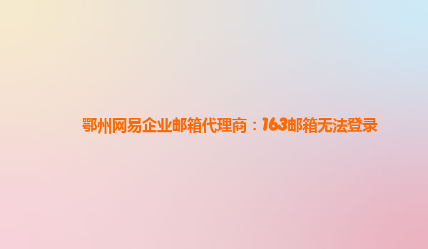 2024-01-23鄂州网易企业邮箱代理商:163邮箱无法登录 近期有用户反馈称无法登录163邮箱,为此我们建议您联系鄂州网易企业邮箱代理商。网易企业邮箱是一款功能强大、安全稳定的企业通讯工具,拥有诸多优势: 1.安全可靠 网易...