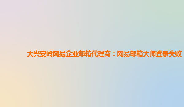2024-01-23大兴安岭网易企业邮箱代理商:网易邮箱大师登录失败 近期,大兴安岭地区的一家企业使用网易企业邮箱服务,并委托当地代理商进行安装与配置。然而,在登陆网易邮箱大师时却遇到了问题,无法成功登录。在面对这一困扰...