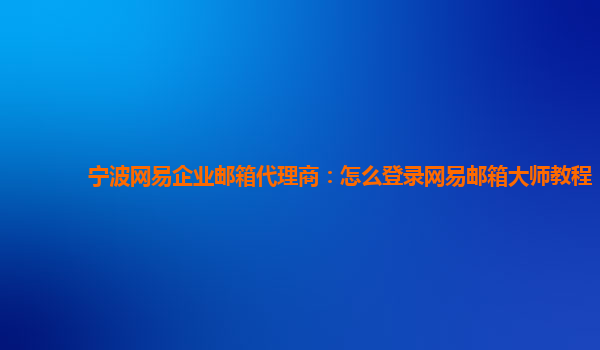 2024-01-19宁波网易企业邮箱代理商:怎么登录网易邮箱大师教程 网易企业邮箱是一款功能强大、稳定可靠的企业级邮箱服务,广受企业用户的信赖和选择。作为宁波网易企业邮箱的代理商,我们将为您详细介绍如何登录网易邮箱大师...